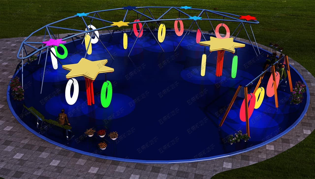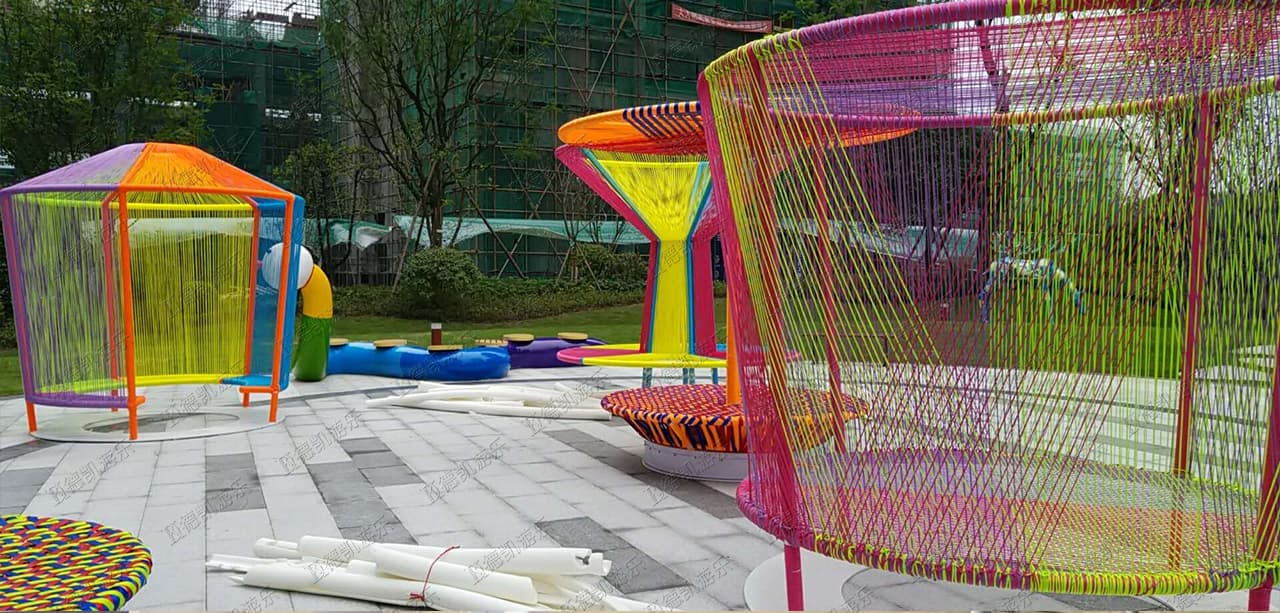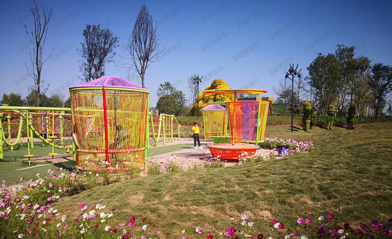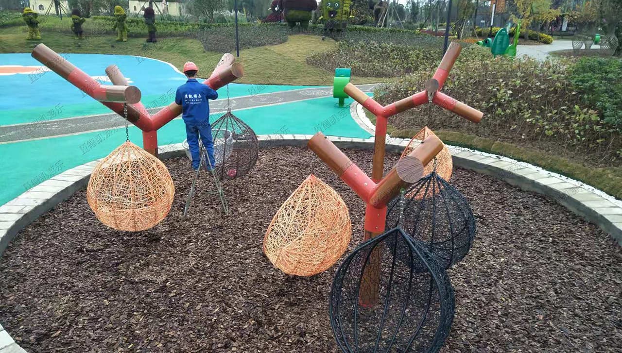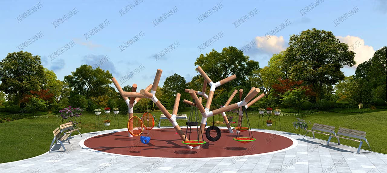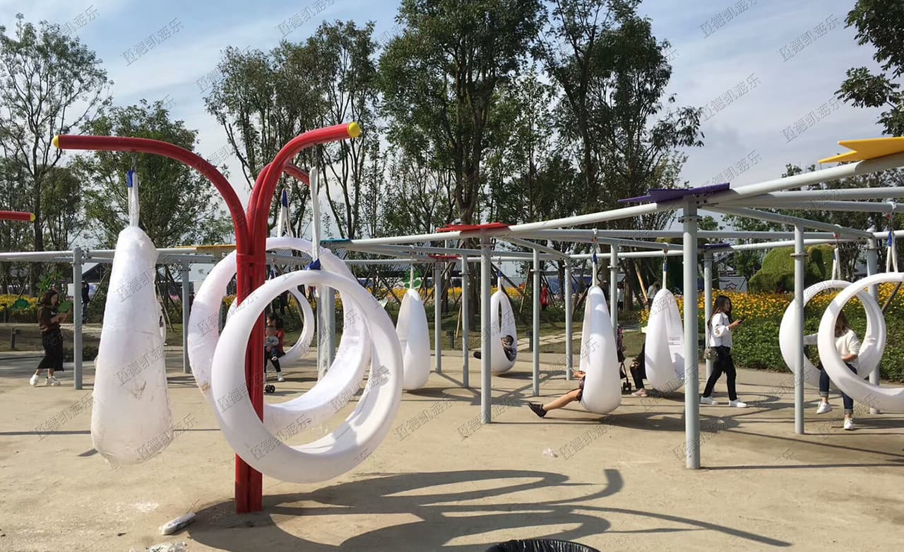 此項目包含:彩虹傘、月光秋千、蝴蝶蹦床、樹枝秋千、敲打樂器、組合秋千、搖籃秋千等產(chǎn)品!