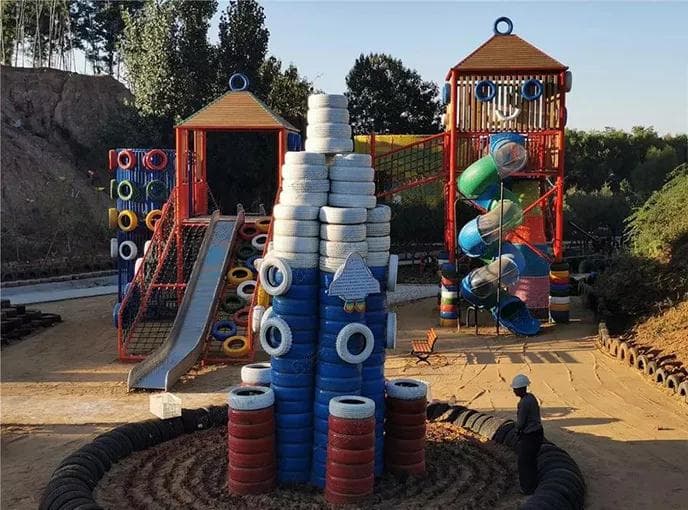 也許你從未想過(guò),廢舊的輪胎除了當(dāng)做垃圾處理,還能做什么?然而在山東青州市王府南陽(yáng)河親子樂(lè)園,就坐落著一個(gè)由四川德凱世界游樂(lè)設(shè)備有限公司通過(guò)廢舊輪胎經(jīng)過(guò)加工組裝而成的輪胎主題樂(lè)園。這里有栩栩如生的動(dòng)物造型、有色彩絢爛的游樂(lè)設(shè)施造型。就讓我們跟隨攝影師的腳步,一起領(lǐng)略輪胎主題樂(lè)園的美景吧!
