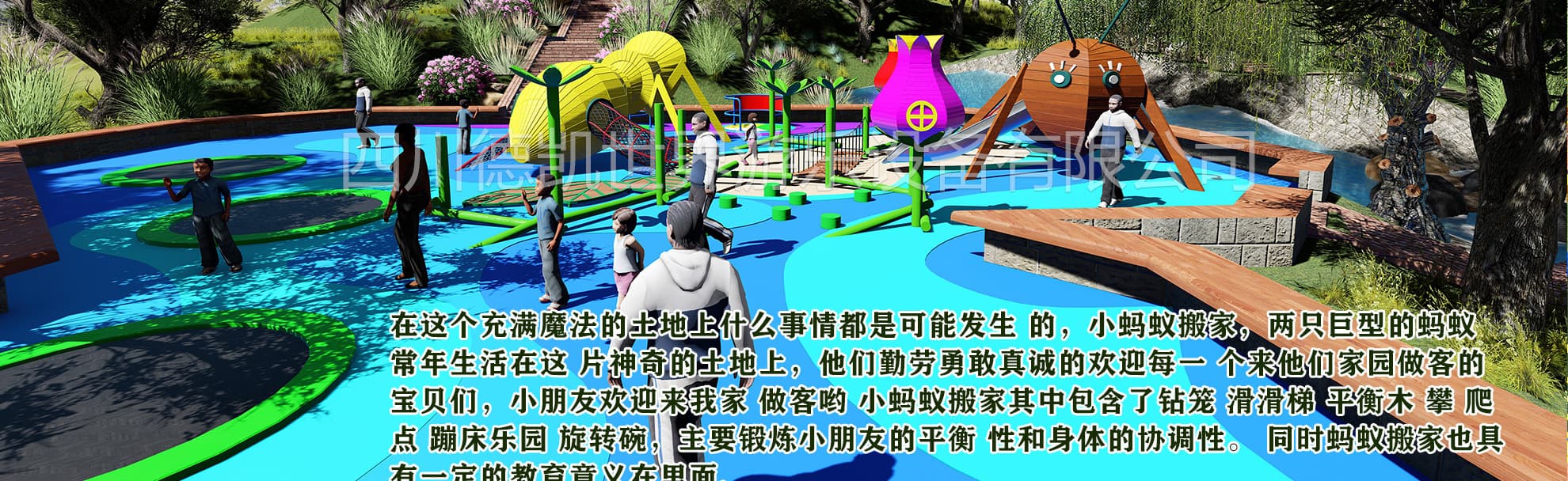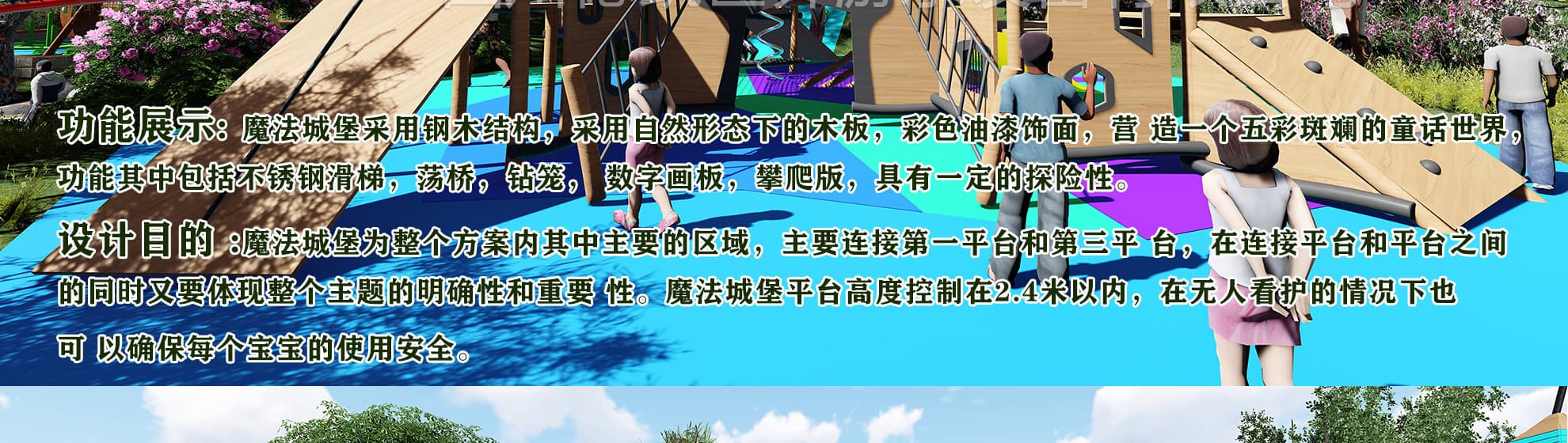 在整個方案的構(gòu)思上,我們充分考慮到魔幻森林 這一主題,就這一主題思想我們展開了我們的思 維大爆炸,主題設備為魔法城堡和小螞蟻搬家, 在這里可能顛覆了我們的世界觀,充分考慮到安 全和實用性,充分滿足客戶的需求。