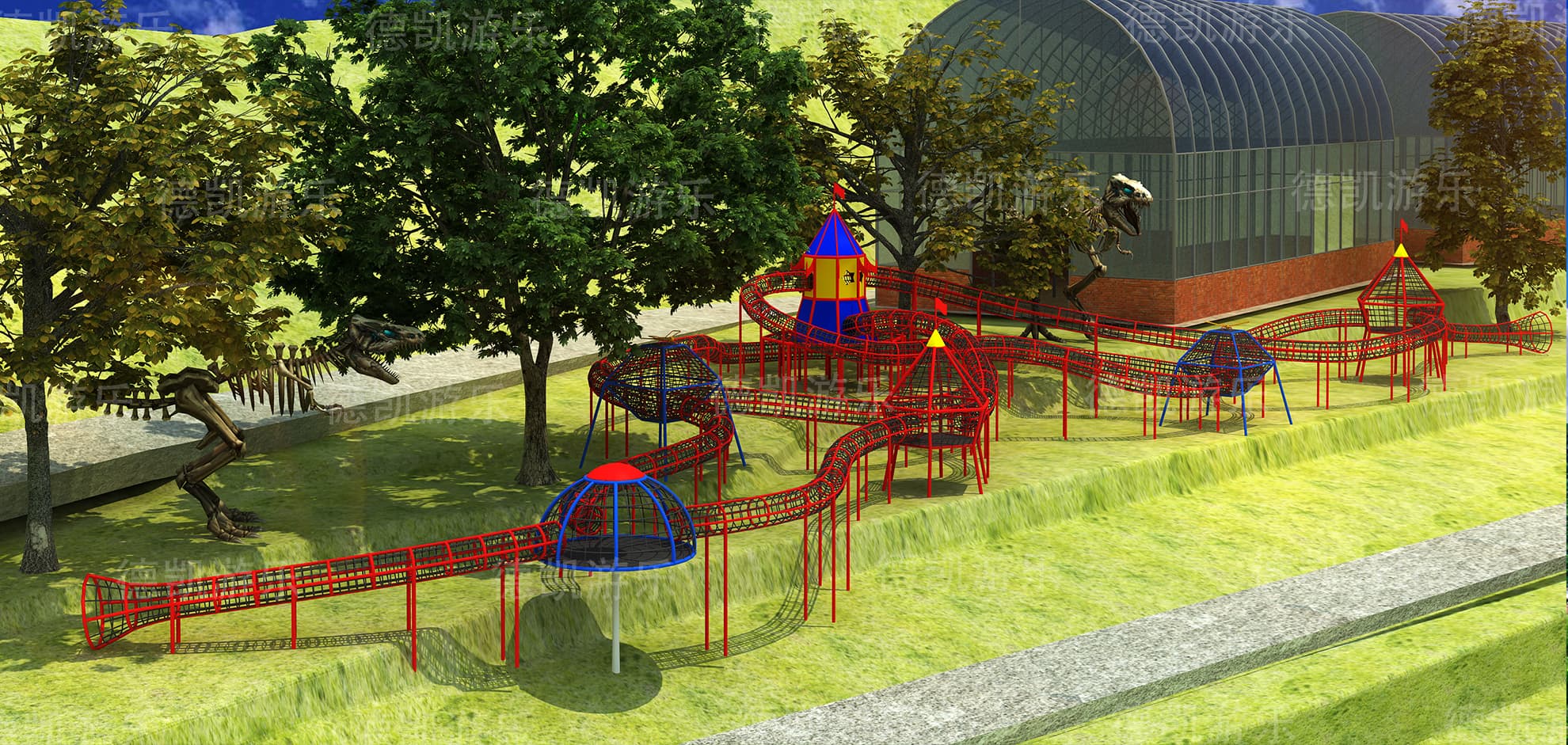 蹦床、輪胎恐龍、拓展效果圖