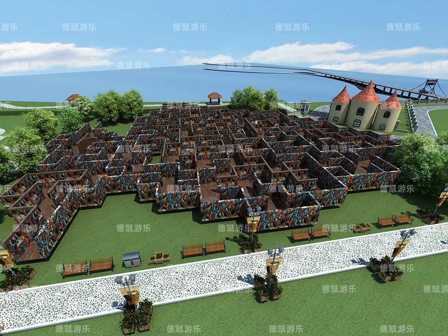 迷宮,指的是充滿復雜通道,很難找到從其內(nèi)部到達入口或從入口到達中心的道路,道路復雜難辨,人進去不容易出來的建筑物。在世界的不同文化發(fā)展時期,這些建筑物始終吸引人們沿著彎彎曲曲、困難重重的小路吃力地行走,尋找真相。在迷宮里面是沒有技巧可言的,只有靠孩子們自己慢慢探索。
