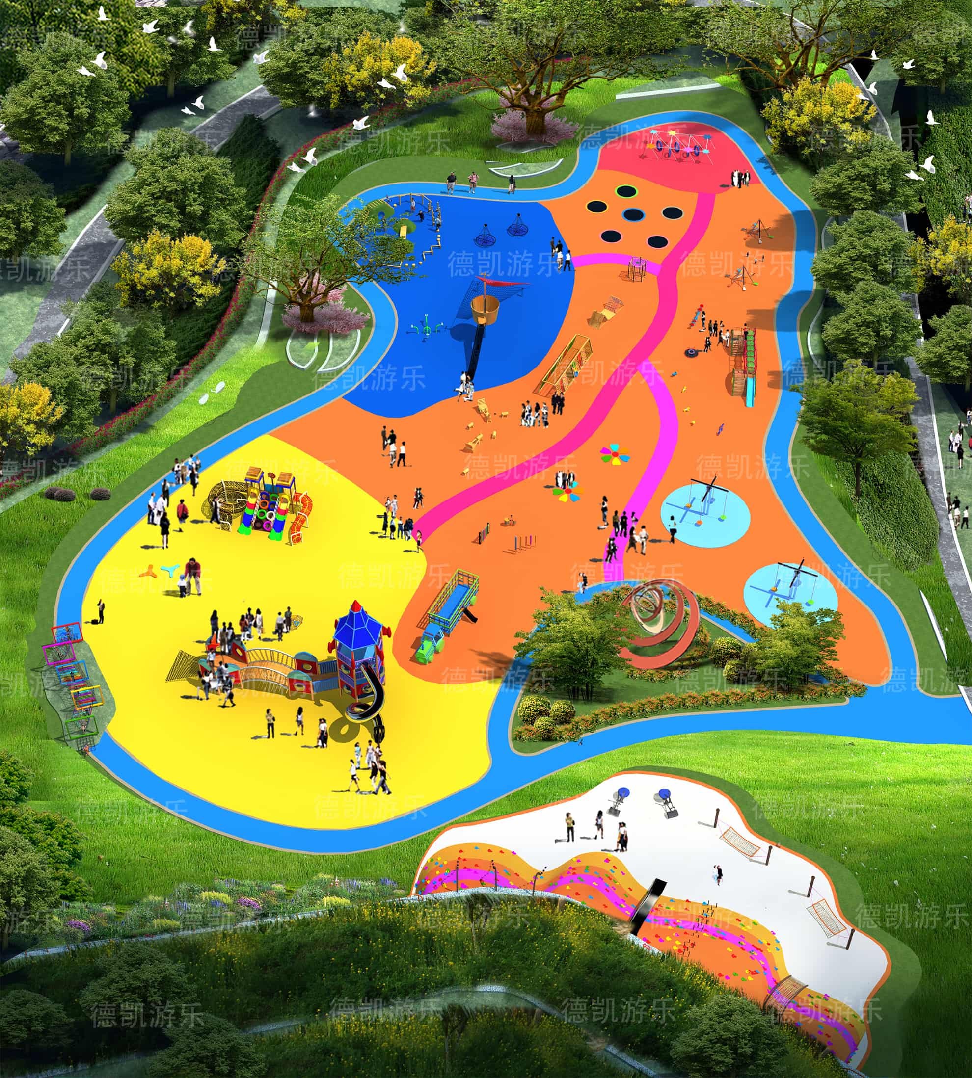 項(xiàng)目的主要規(guī)劃,場(chǎng)景的布置,設(shè)備的類型,設(shè)備的擺放以及整體場(chǎng)景的搭配,都在整體效果圖里面得到了體現(xiàn)。在效果圖之中,我們看見了沙池、攀巖組合和攀爬釘、攀爬桿、攀爬網(wǎng)、沙馳滑梯,還有沙池里面的挖沙機(jī)、小拓展、主體的滑梯、鉆網(wǎng),小火車滑梯組合、鉆網(wǎng)滑梯組合、拓展群組合、打擊樂器組合、旋轉(zhuǎn)秋千、蹦床、蹺蹺板、轉(zhuǎn)椅。