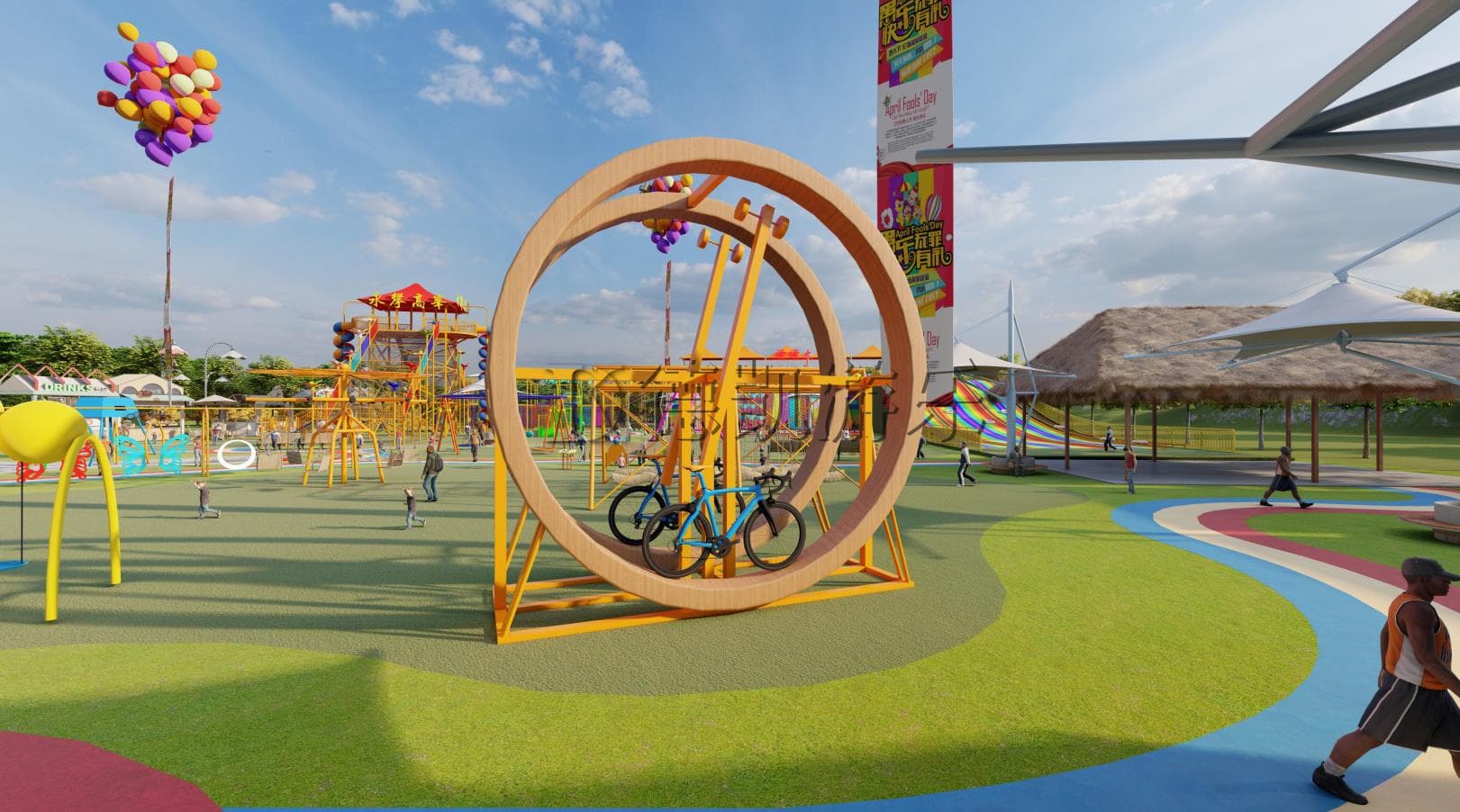 無動力游樂設(shè)施的主題性在業(yè)內(nèi)一直沒有得到足夠的重視,其實同樣可以植入IP,講很好的故事,和當(dāng)?shù)氐奈幕诤?,和主題包裝去做結(jié)合,打造它的亮點和特色。一般來說,許多文旅項目對自然環(huán)境有很高的要求,而親子無動力游樂設(shè)備的規(guī)劃極少破壞自然環(huán)境,可以高度集成于當(dāng)?shù)氐奈幕h(huán)境和自然景觀,也是無動力樂園的一個重要特征。